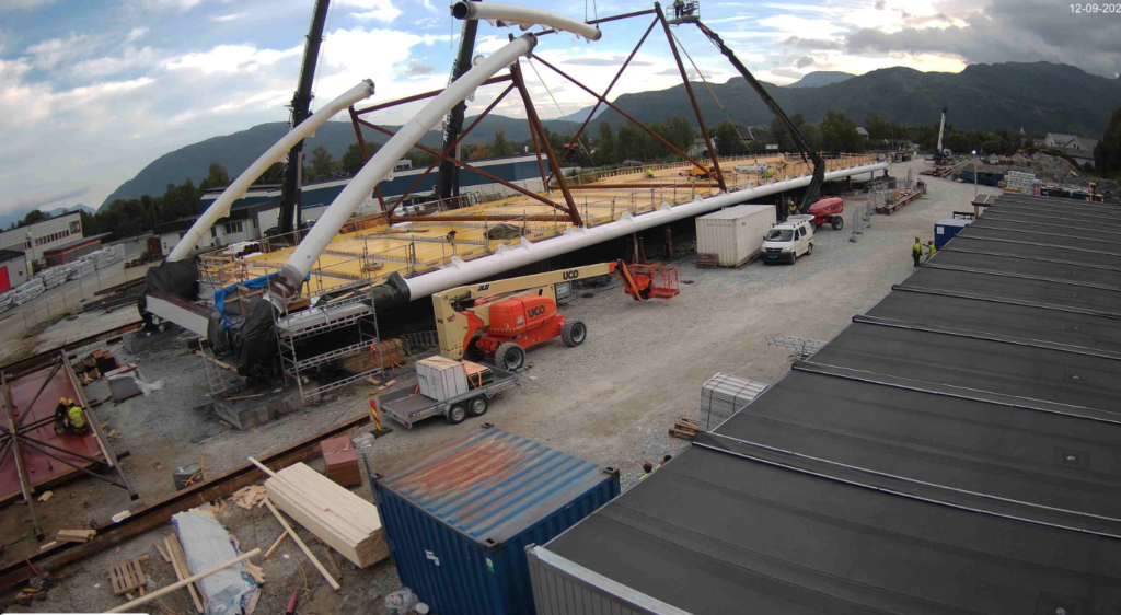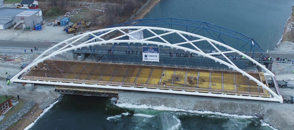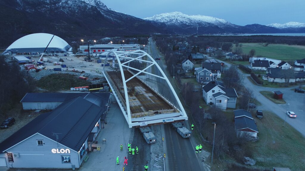 | Om prosjektet: | Levering av stål, fabrikasjon, overflatebehandling og montasje av ny E6 Storslett bru. Montert/sveist sammen på en idrettsbane, fraktet ca 300 m, og plassert over Reisaelva |